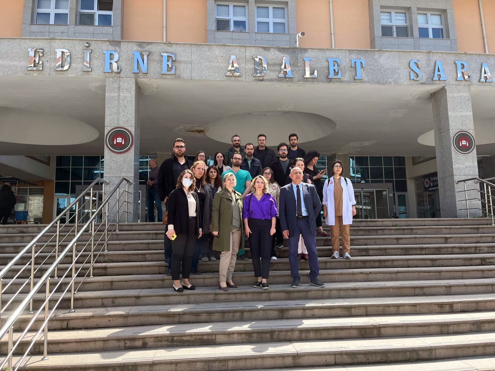 Kuşçu hakkında darp davasının yanı sıra tehditle ilgili de Edirne 5’inci Asliye Mahkemesi’nde açılan ikinci davanın ilk duruşması bugün görüldü. Duruşmaya doktor B.B.Ö. katılmazken avukatları ile Edirne Tabip Odası Başkanı Prof. Dr. Gürkan Altun, oda yönetim kurulu üyeleri ve çok sayıda meslektaşı ile sanık Volkan Kuşçu katıldı.