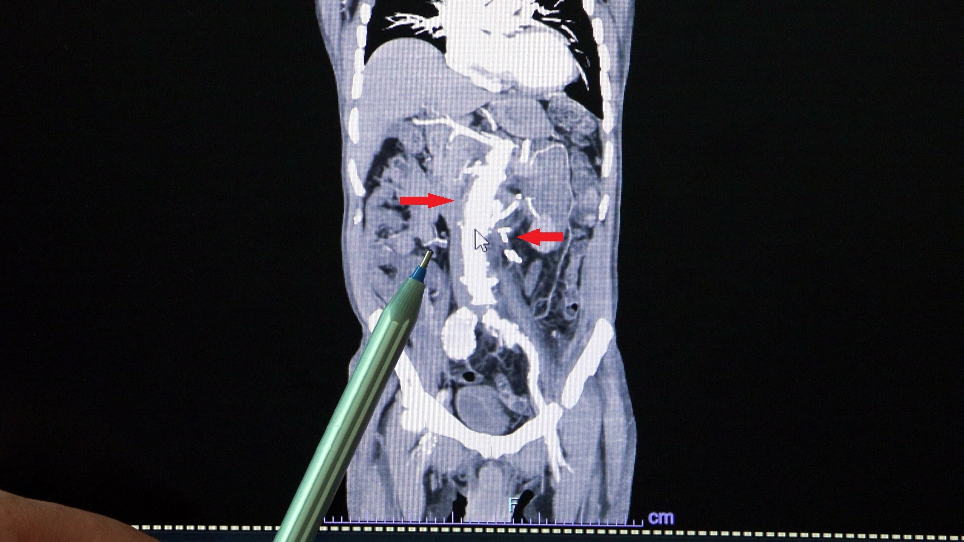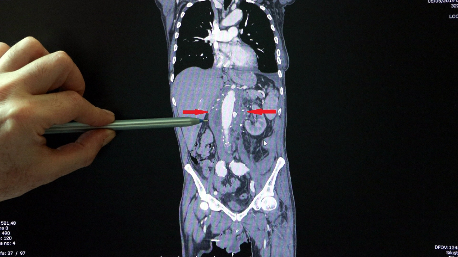 – Sıtkı Bey bize 5 yıl önce geldi, 3 ay önce bypass olmuştu. Karnında bir baloncuk şüphesi vardı. 3 santim olması gereken ana damar çapının yaklaşık 10 santime ulaştığını gördük. Anevrizma dediğimiz bu durum, aort damarının ya göğüs bölgesinde ya da karında olur. Ama Sıtkı Bey’de 60 santimlik aort damarının hepsinde genişleme vardı. Bütün iç organları ve bacakları besleyen hayati organ damarları da o baloncuğun içinden çıkıyordu. Patladı patlayacak durumdaydı.