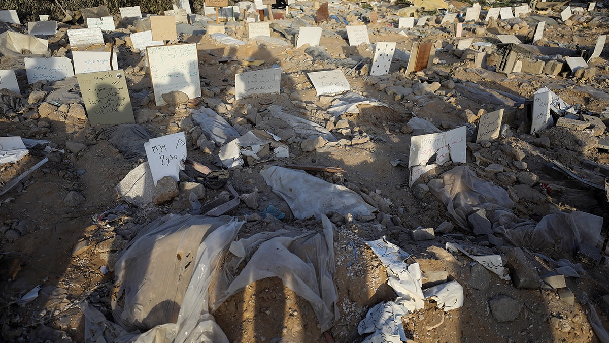 İsrail ordusu, Filistinlilerin Şifa Hastanesinde kurduğu geçici mezarlığı da yıktı. İsrail ordusunun çekilmesinin ardından hastaneye gelen Filistinliler, yıkılan mezarlıklardan çıkan cesetleri topladı.